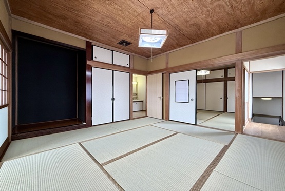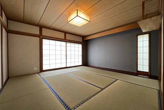 居住部分にはハウスクリーニングを実施し、クロスやフローリングの張替、畳の表替えを行いました。各部屋にはアクセントクロスを採用し、それぞれに個性をプラス。さらに、水回り設備も一式交換し、機能性と清潔感を兼ね備えた快適な空間へと生まれ変わりました。