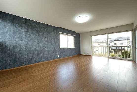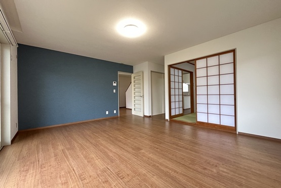 室内はクロス・フローリングを全面張替。アクセントクロスを取り入れ、リビングや洋室には外壁とリンクさせたブルーを採用しました。建物全体に統一感が生まれ、デザイン性の高い空間に仕上がっています。