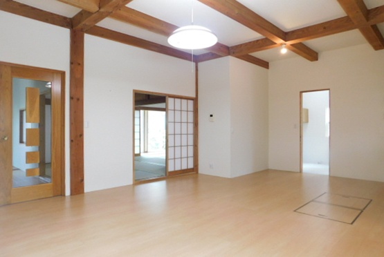 築年数約40年ということもあり、年数相応の経年劣化がありましたが、柱や梁などの構造躯体がしっかりしていたので、思い切ってリノベーションをしました。リビングの横に納戸部屋がありましたが、柱を残して耐震性を守りつつ、壁を撤去し広々とした開放的なリビングに変更を致しました!!2Fの和室は若い世代の方にも使いやすいように畳からフローリングに変更し、洋室に。今回は建物の床面積が約50坪と大変広く、リノベーション費用も相当かかりましたが、今後何十年も使用可能な立派な建物に仕上がりました!古くなったからすぐ取り壊すのではなく、しっかりとしたリフォームをすることで建物はこれからも十分使用可能となります。