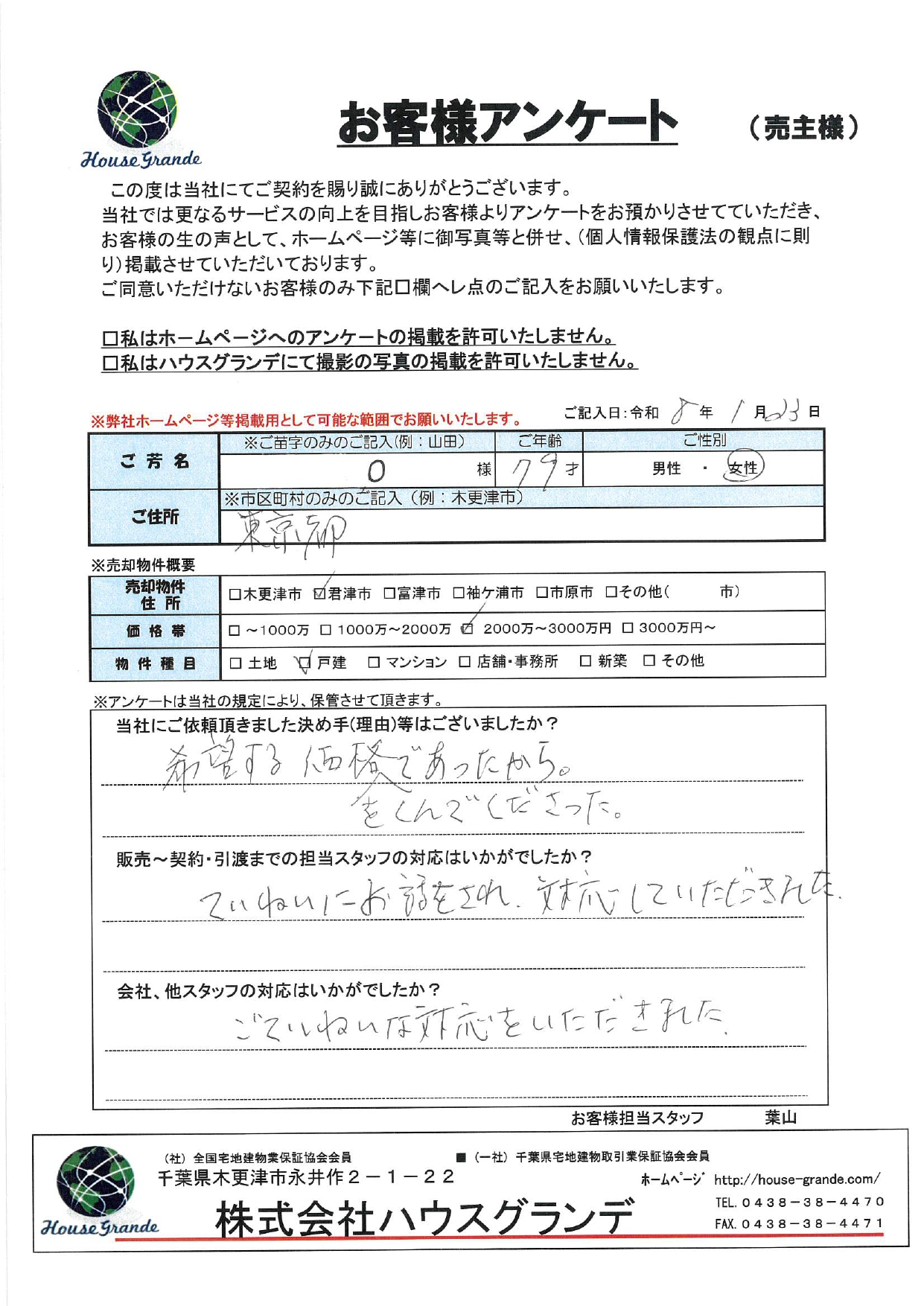 ご売却についてはこちらで完了となりますが、また不動産に関するご相談等ございましたらお気軽にご連絡いただければと思います。