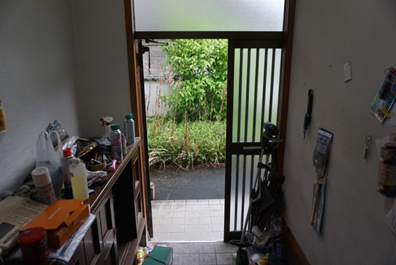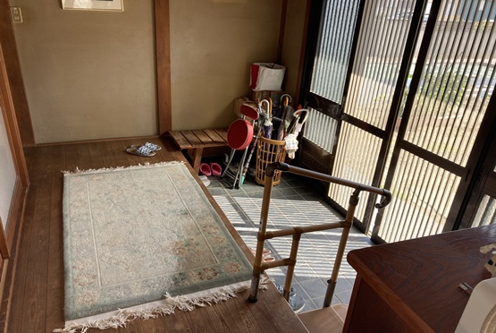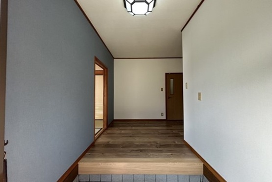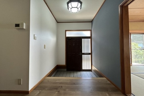 室内では、古くなっていた下駄箱を撤去し、玄関を広々とした清潔感のある空間へと一新。