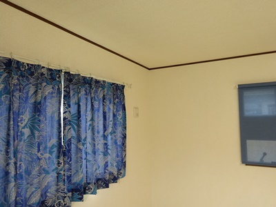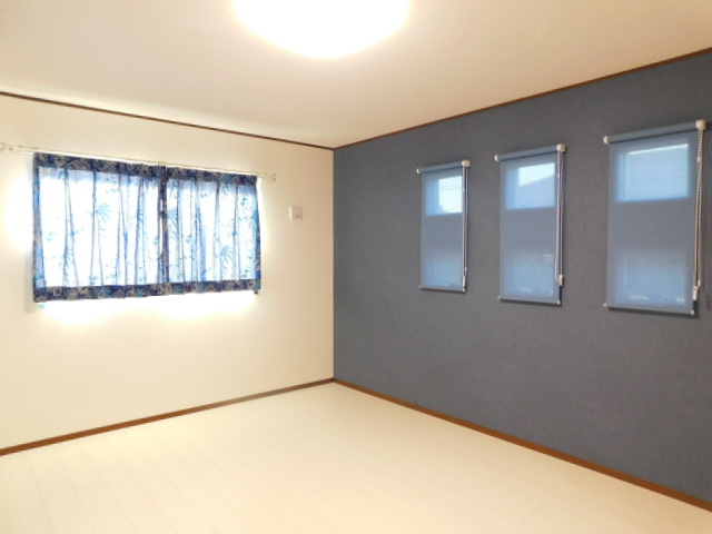 海まで歩いてすぐそばのお家だったので、海がお好きな方に購入いただけるかなぁ〜という思いから、きっとリゾート感のある雰囲気が好まれるはずだ!と勝手な考えで、アクセントクロス(壁の一部のみ色や模様を変える)を施工してみました。