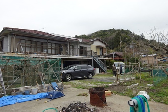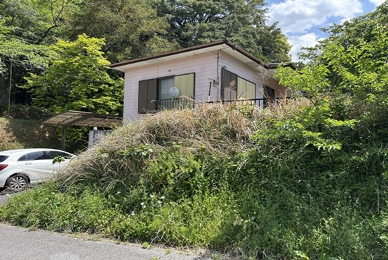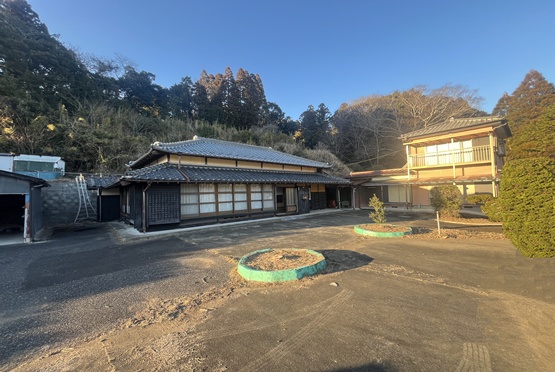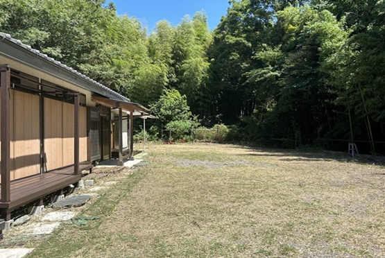 敷地内に古民家と2階建の戸建てが建築された敷地の広い物件、敷地に法面を含み、以前は果樹園として利用されていたということでした。弊社購入時は果樹園含む敷地内は草木に覆われていたので、少しの造成を含む敷地の美装を行いました。